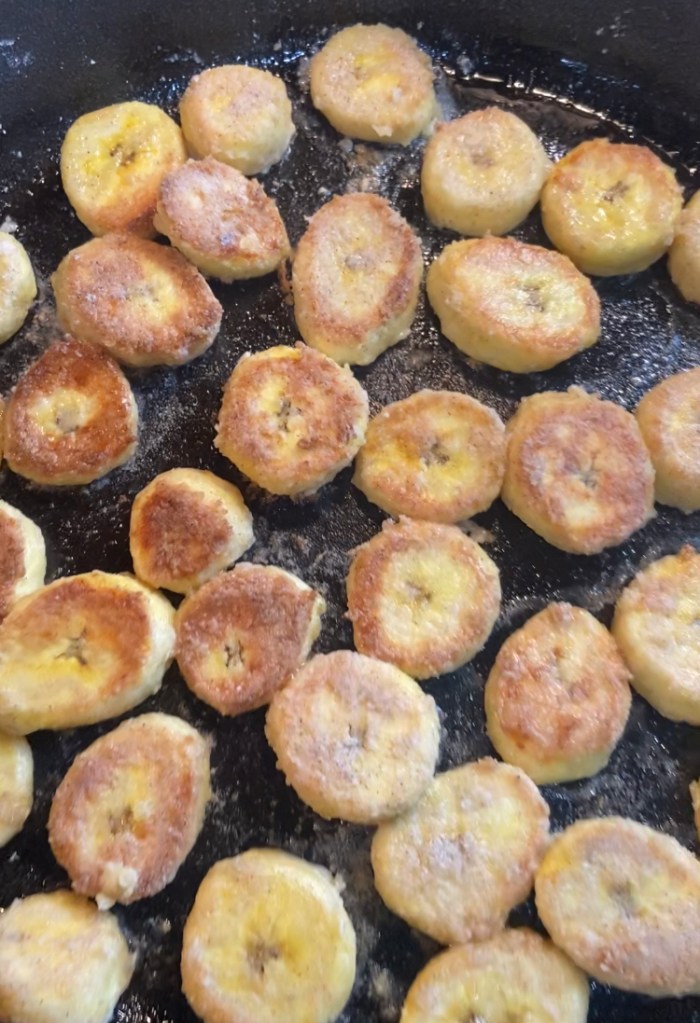•Heat a pan to medium heat & add the vegan butter to melt. Add the plantains & cook them for 4-5 minutes, flip them over & cook for 4-5 minutes more.