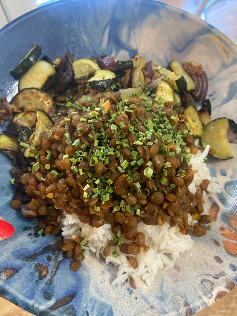 Heat sesame oil over medium heat & add the garlic & ginger. Stir for a couple of minutes heating until fragrant & then add the Gochujang, tamarii or soy sauce & brown sugar & stir to combine. Add the cooked lentils, stir again & heat for a couple of minutes.