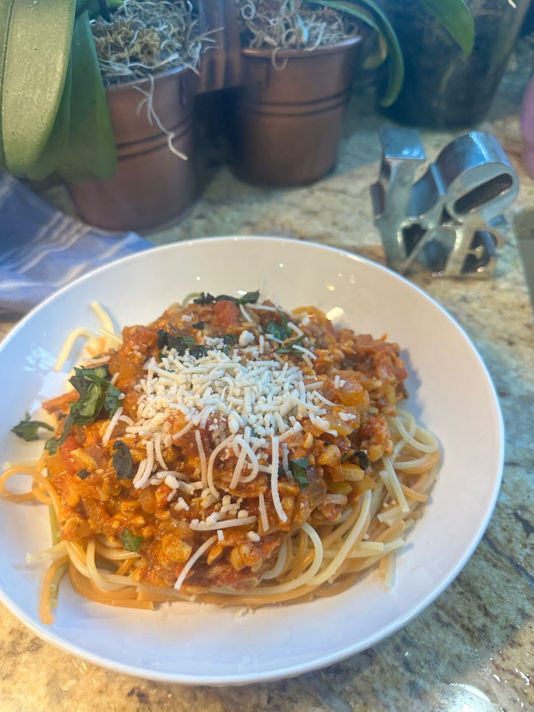 Add marinara sauce, nutritional yeast, Italian seasoning, oregano, thyme, garlic powder, onion powder & white miso paste & simmer for about 10 minutes. Season with salt & black pepper to taste.