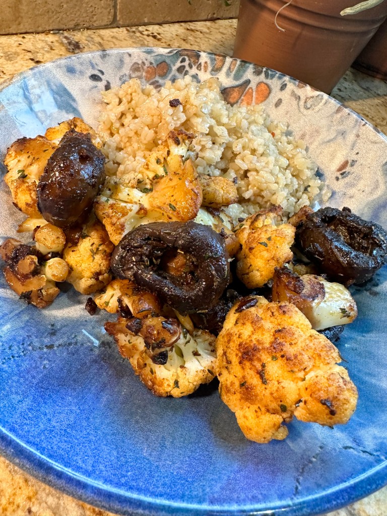 Sprinkle with the vegan parmesan, panko & crispy onions & bake for 30 minutes. Give it about 5 minutes to cool, then enjoy!
